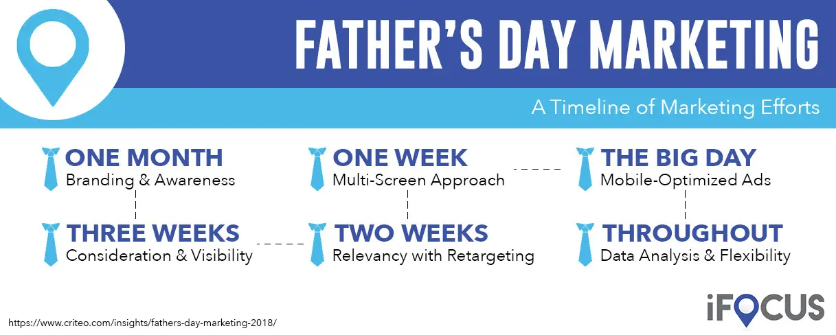 All of these ideas are great ways to create more awareness for your brand this Father’s Day, but there’s another important element missing – timing. When should you do what? When do you need to start promoting? When should things be published? Use the below timeline to get you started.