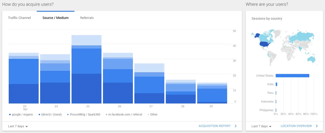 One of the other great features of Google Analytics is it allows us to look at multiple aspects of your business. This is thanks to a tool called real-time data (also known as RTD), which includes information such as how many users are on your website at any given moment, as well as what page of your site they’re currently on; audience information (as described in the above paragraph), plus more granular information, such as specific devices on which users are searching for your business (mobile devices, tablets, desktops, etc.); and much, much more.